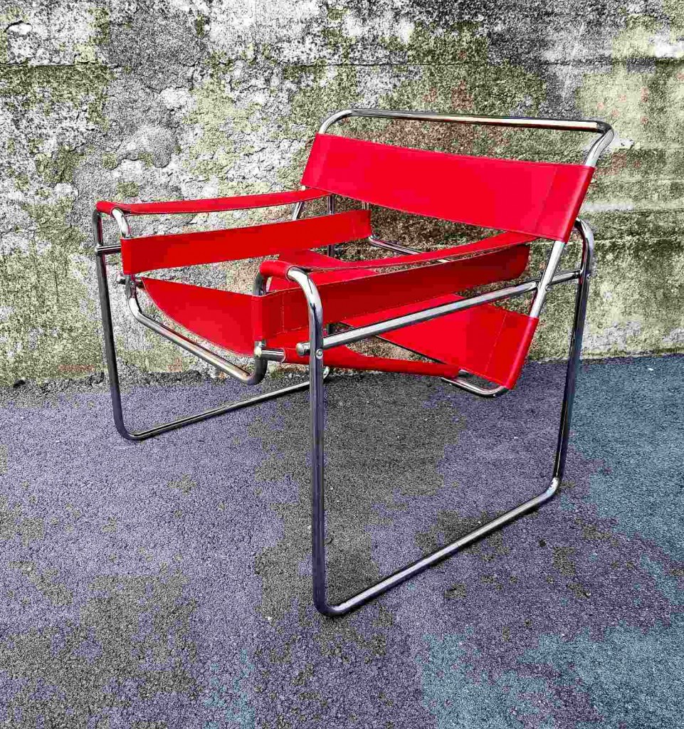 Mid Century Wassily B3 Armchair, Marcel Breuer Design,Red Leather, Italy '80s