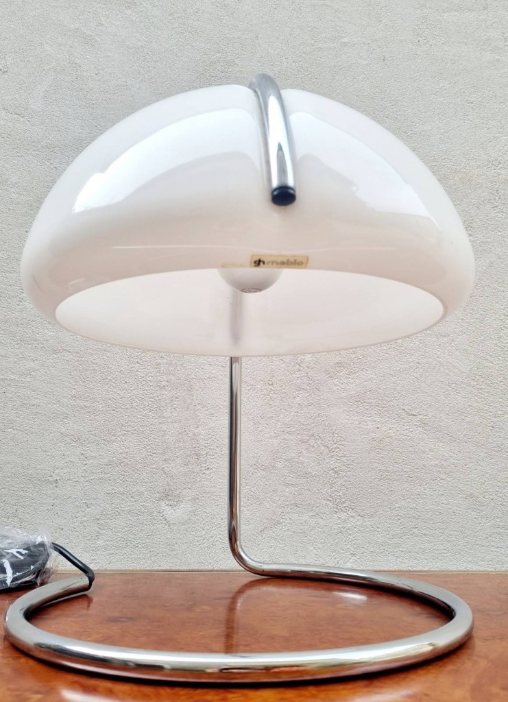 This iconic piece, designed in 1968 by Luciano Buttura & Luigi Massoni for Guzzini was made in the 70s in Meblo Yugoslavia, The table lamp was named Conchiglia.
