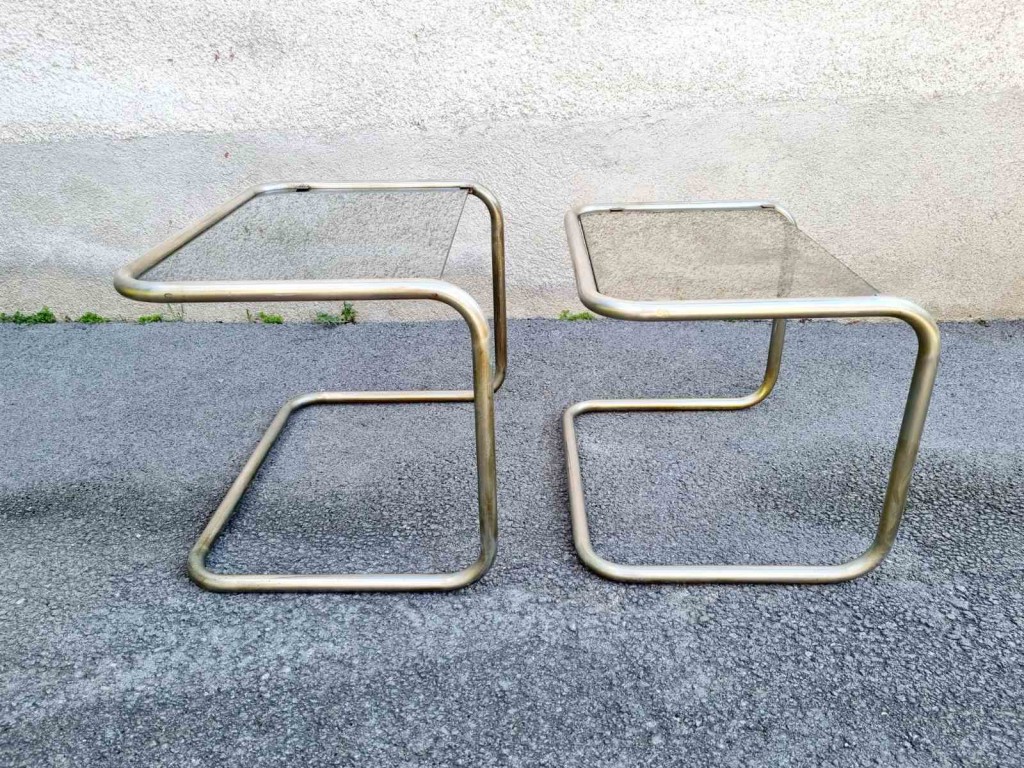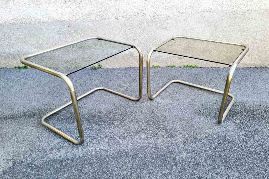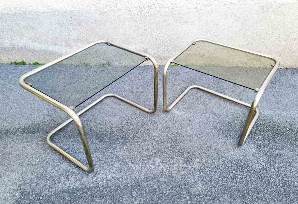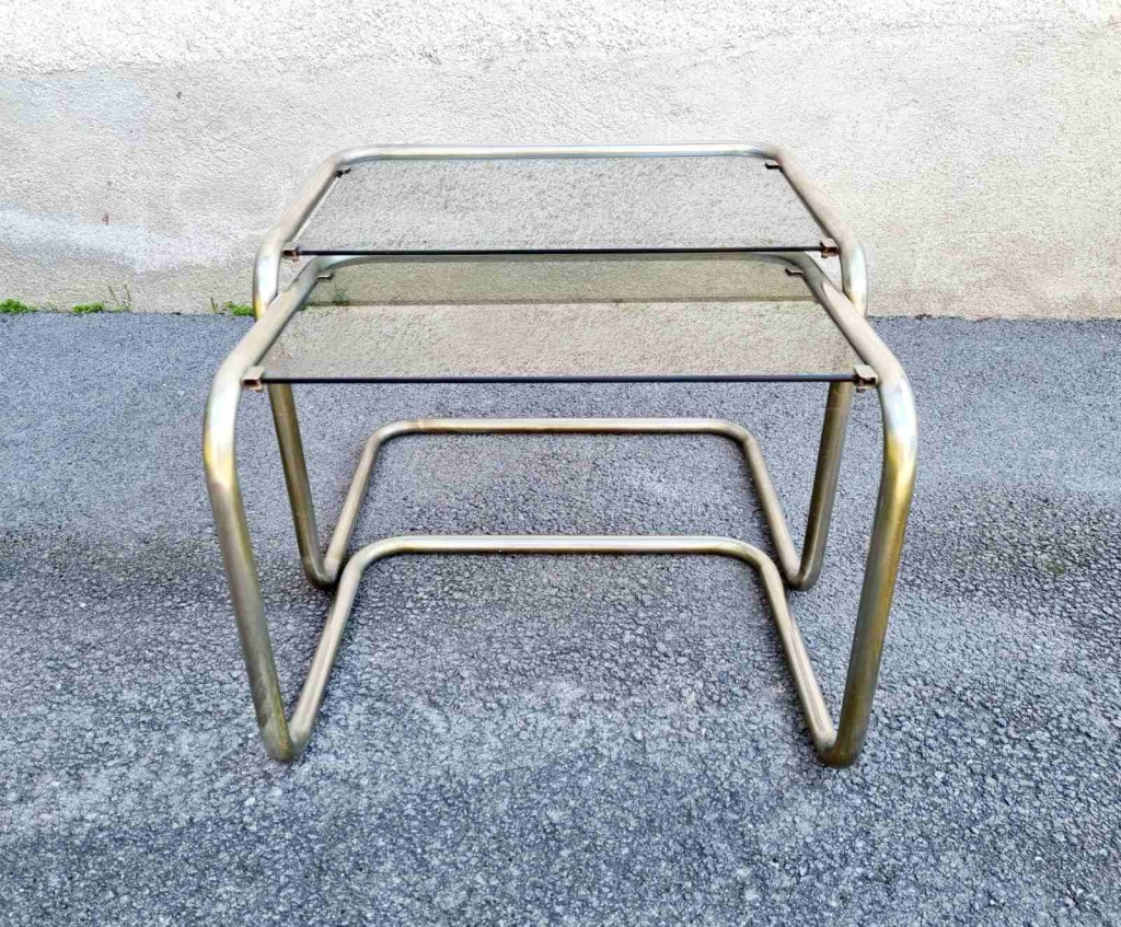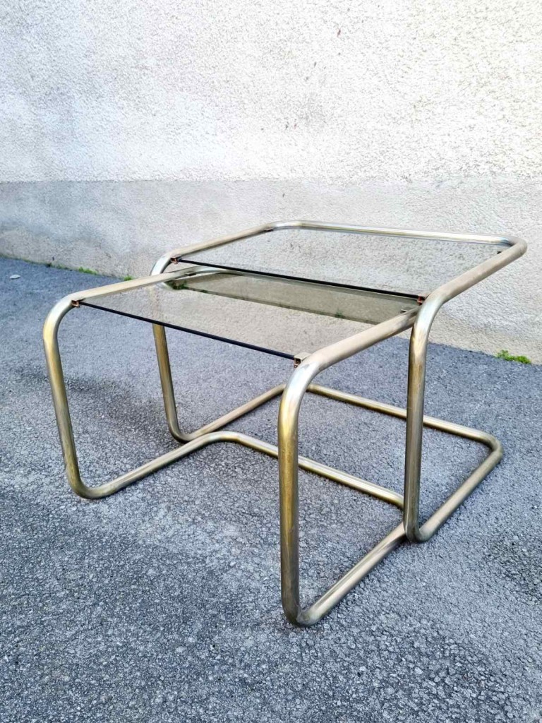 Pair of tubular nesting tables made in Bauhaus style. It can be used as coffee table or side tables. Made in Italy in the 50s