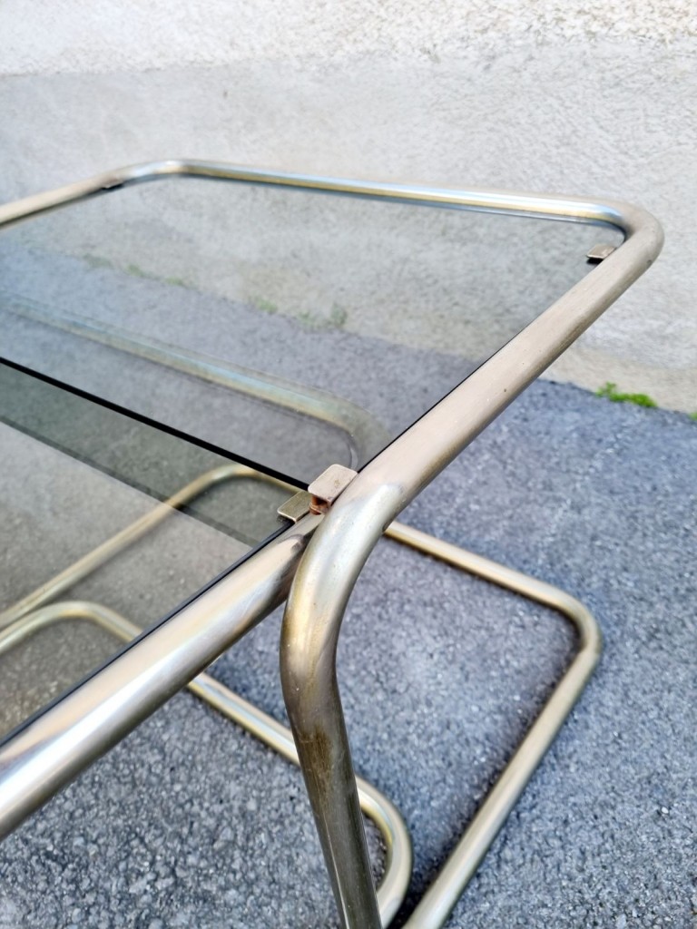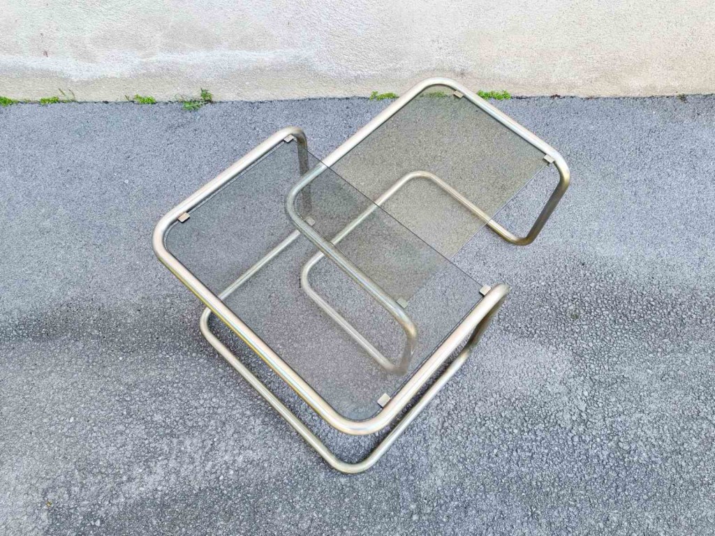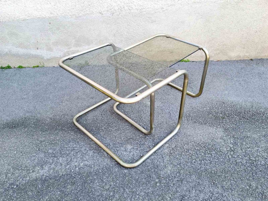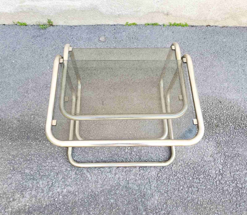 Pair of tubular nesting tables made in Bauhaus style. It can be used as coffee table or side tables. Made in Italy in the 50s