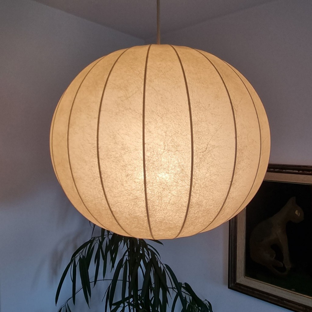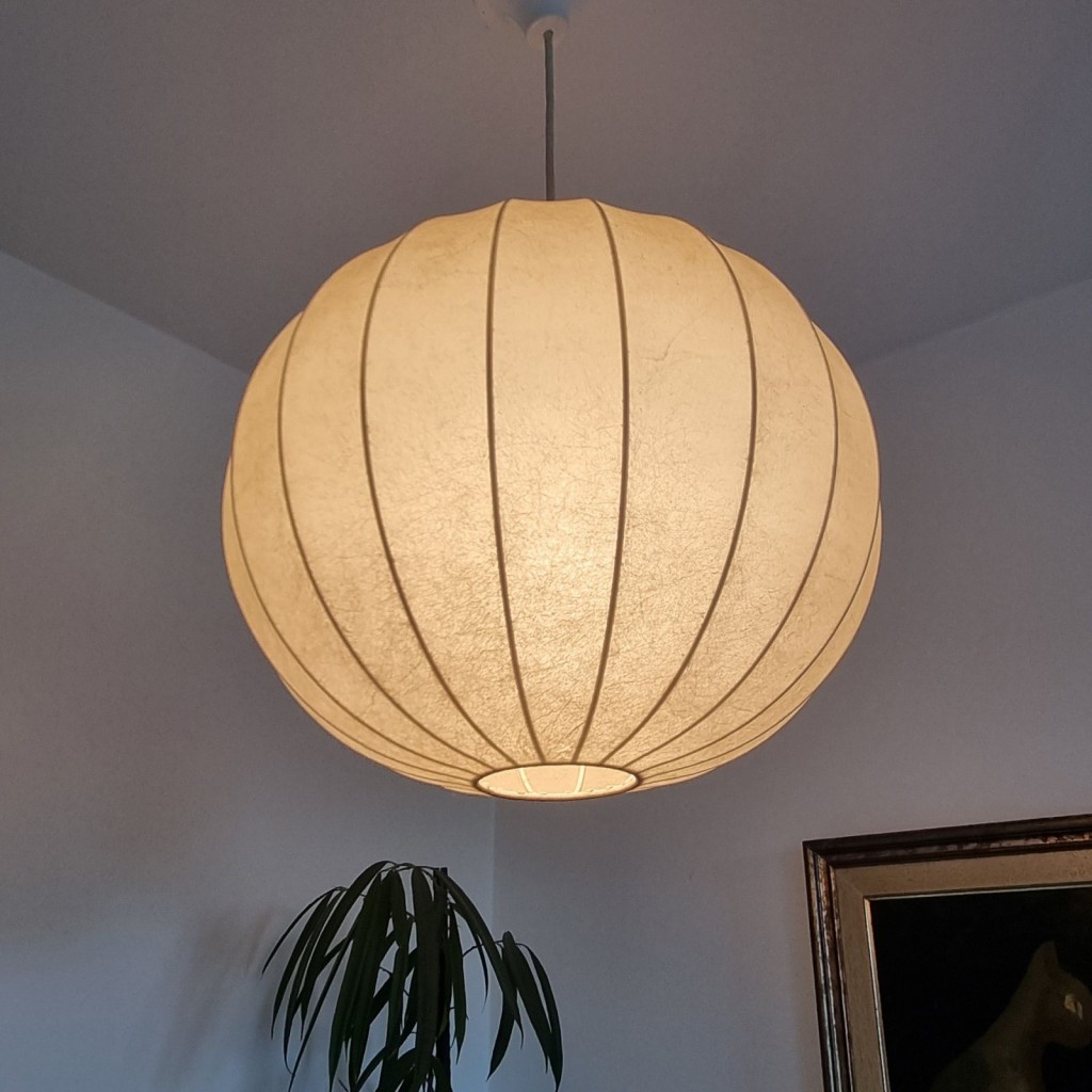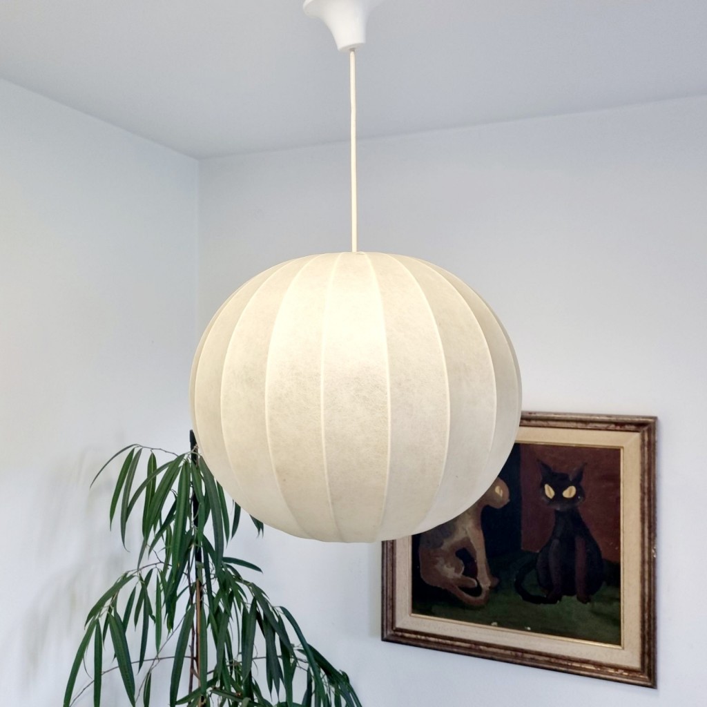 Mid Century Cocoon pendant lamp designed by Achille Castiglioni in the 60s. The lamp is in great condition with minor signs of use and age (see photos), working perfectly.