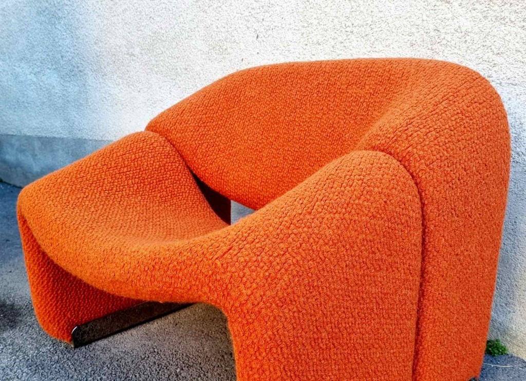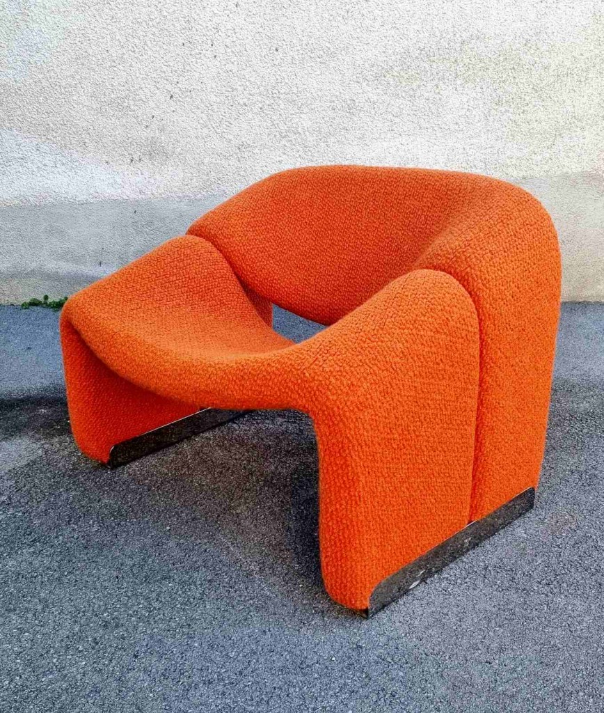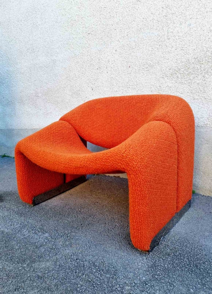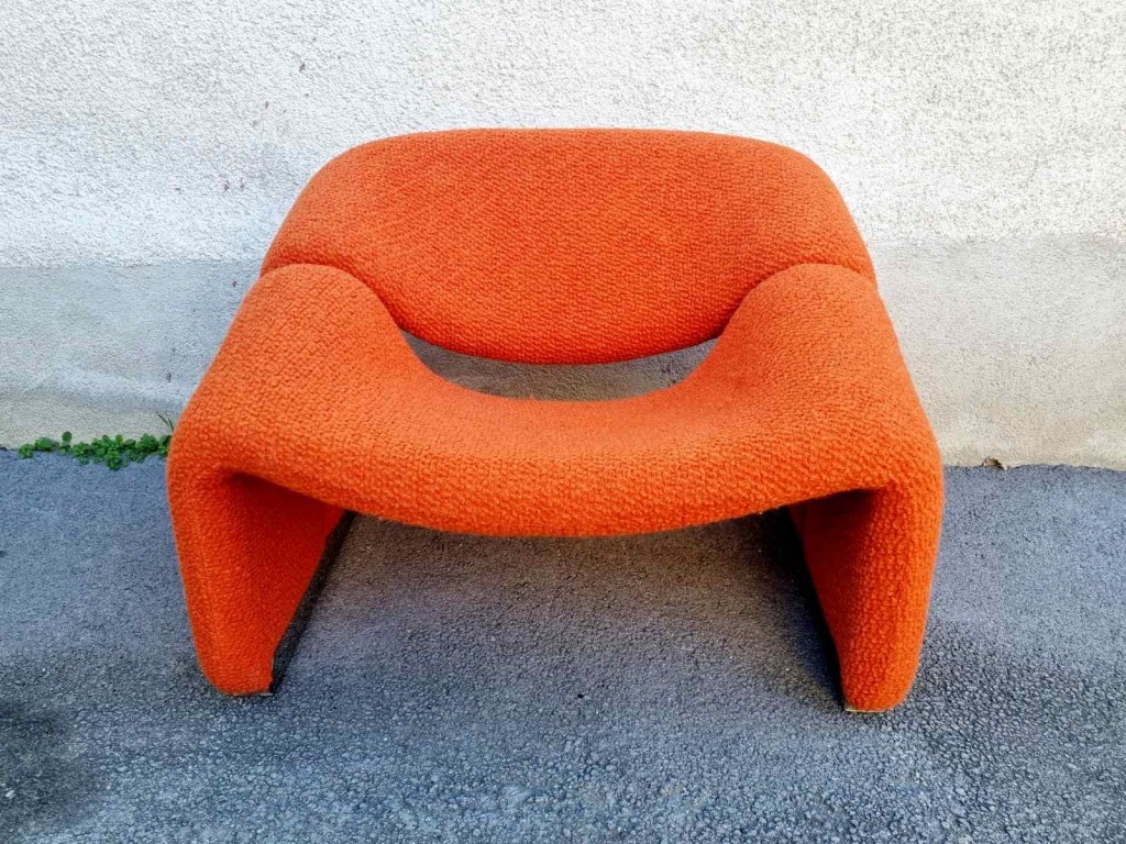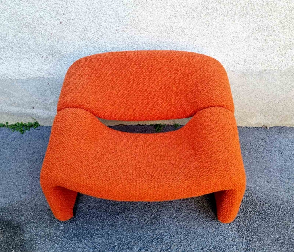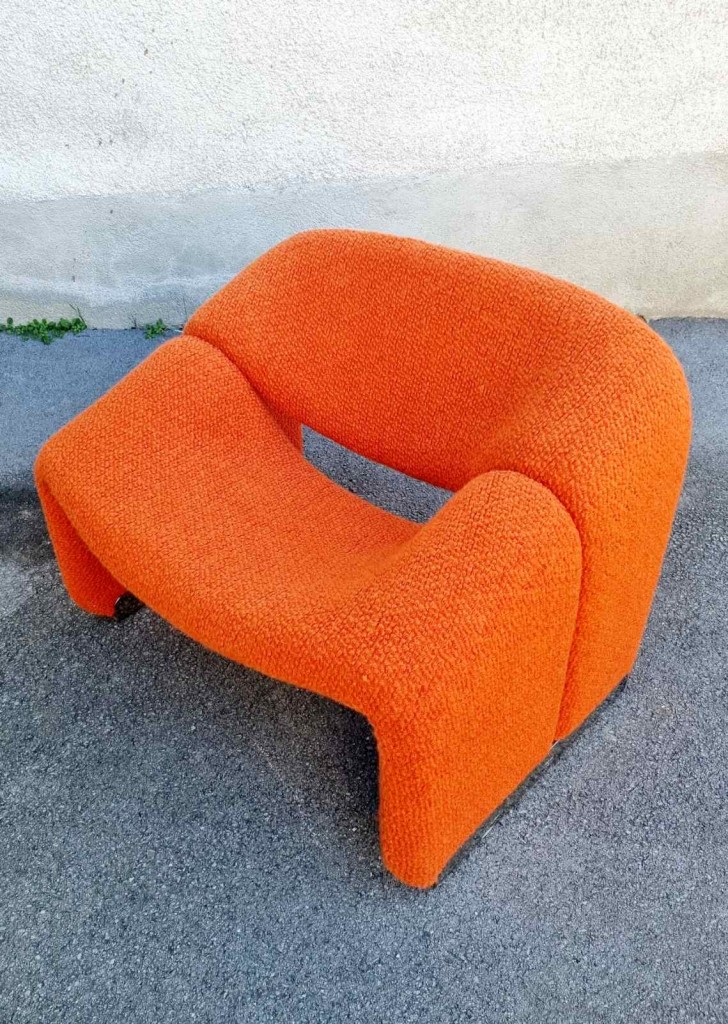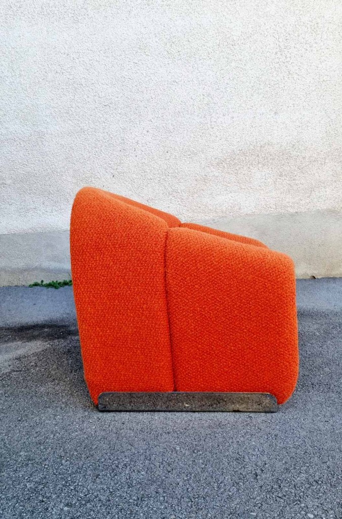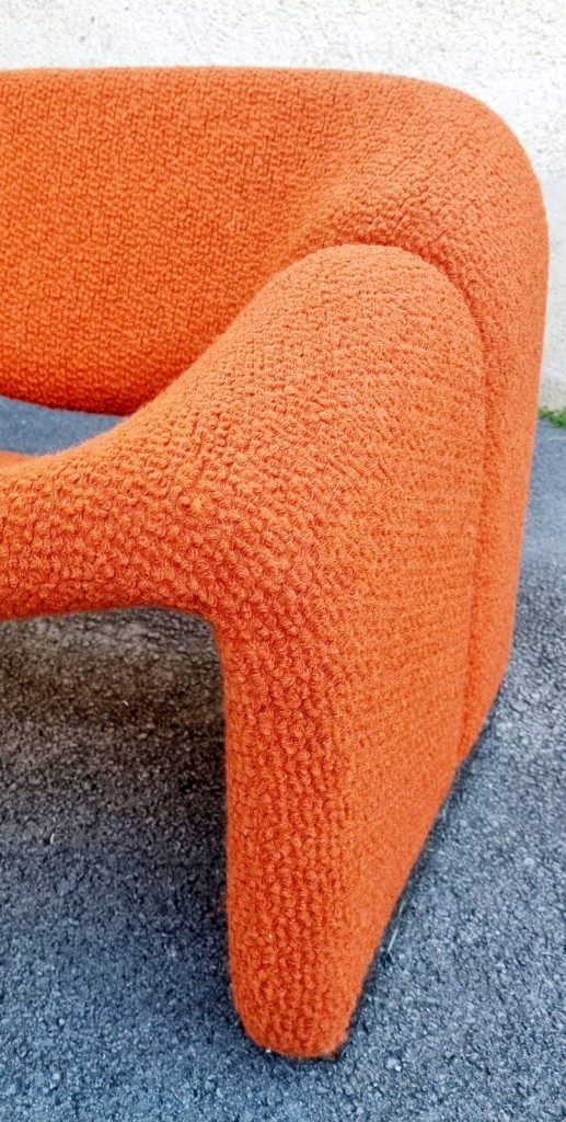 The Groovy chair, or F598, was designed in 1973 by France’s top designer Pierre Paulin for Holland’s most Avant-Garde furniture maker Artifort. Their compactness combined with great comfort and of course, iconic looks made this chair one of the stars of the 1970s. This chair was produce by Stol Kamnik ex Yugoslavia in the 1984 for the opening of hotel Holiday Inn in Sarajevo. Reupholstered in orange bouclé.