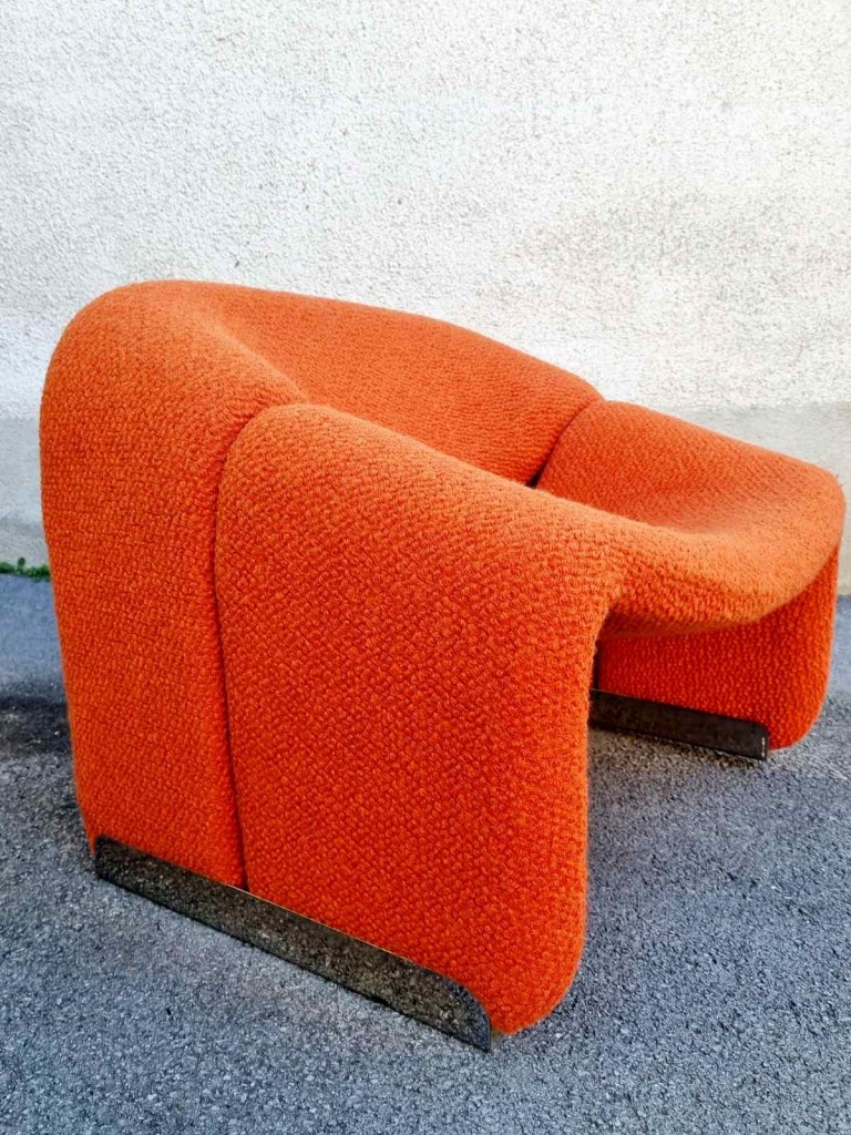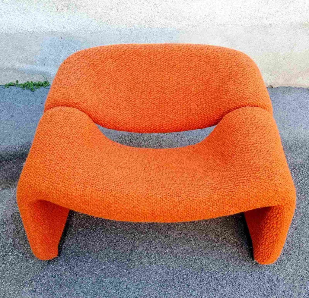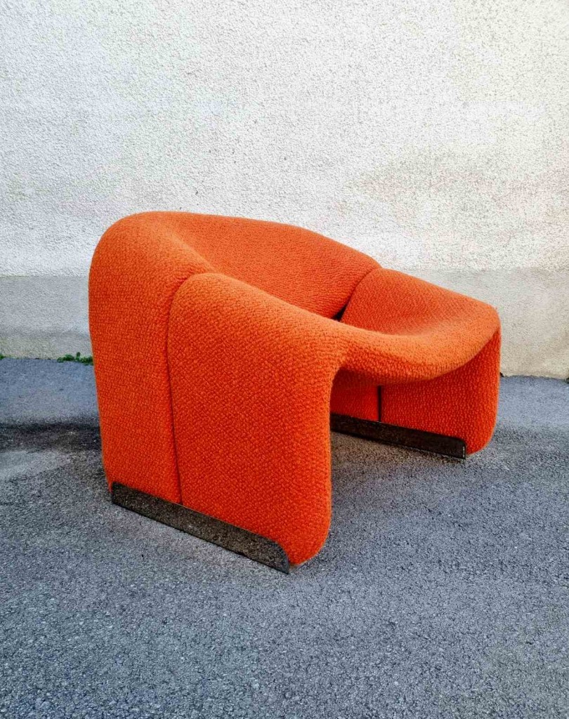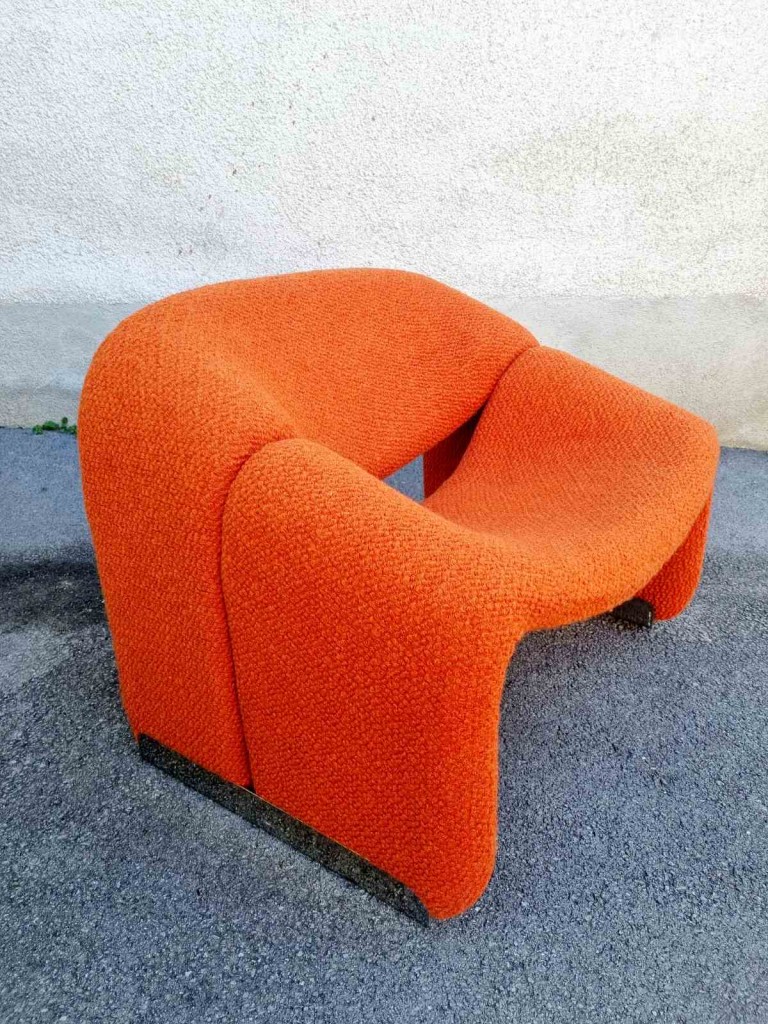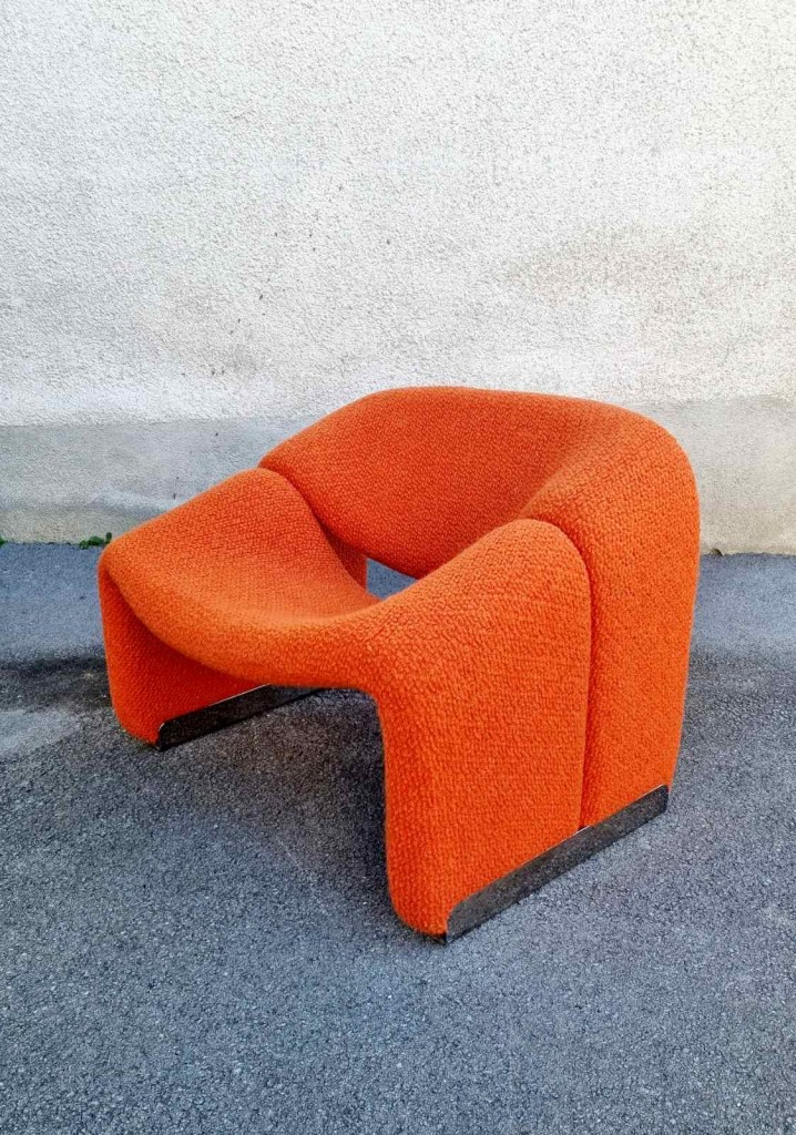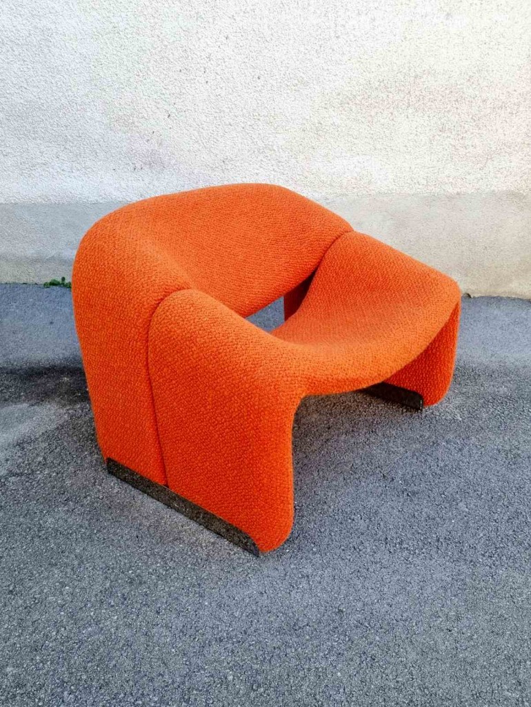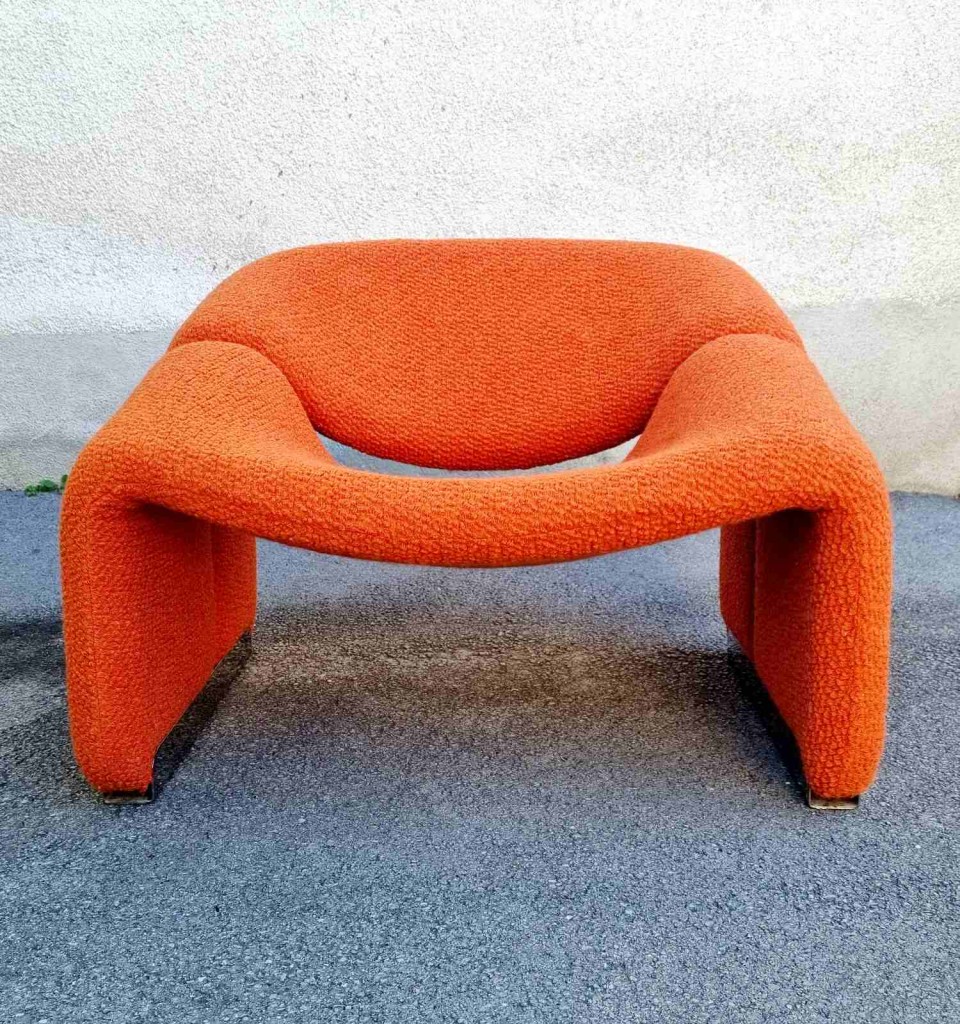 The Groovy chair, or F598, was designed in 1973 by France’s top designer Pierre Paulin for Holland’s most Avant-Garde furniture maker Artifort. Their compactness combined with great comfort and of course, iconic looks made this chair one of the stars of the 1970s. This chair was produce by Stol Kamnik ex Yugoslavia in the 1984 for the opening of hotel Holiday Inn in Sarajevo. Reupholstered in orange bouclé.