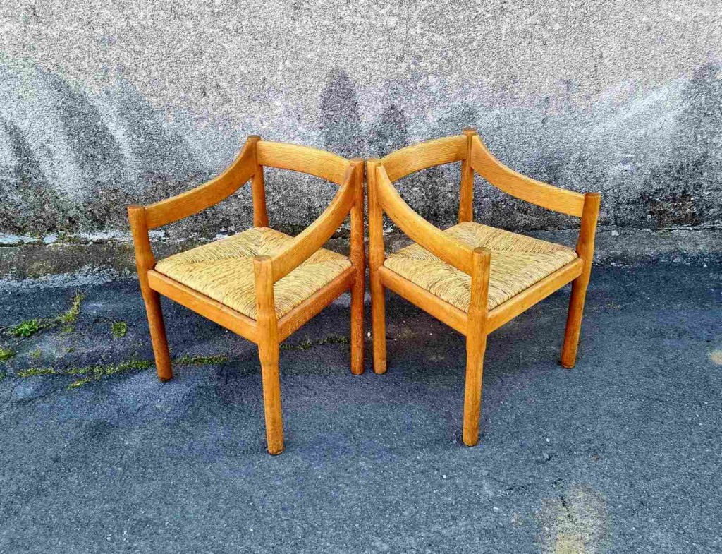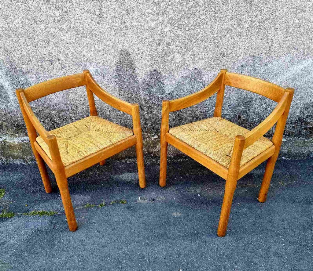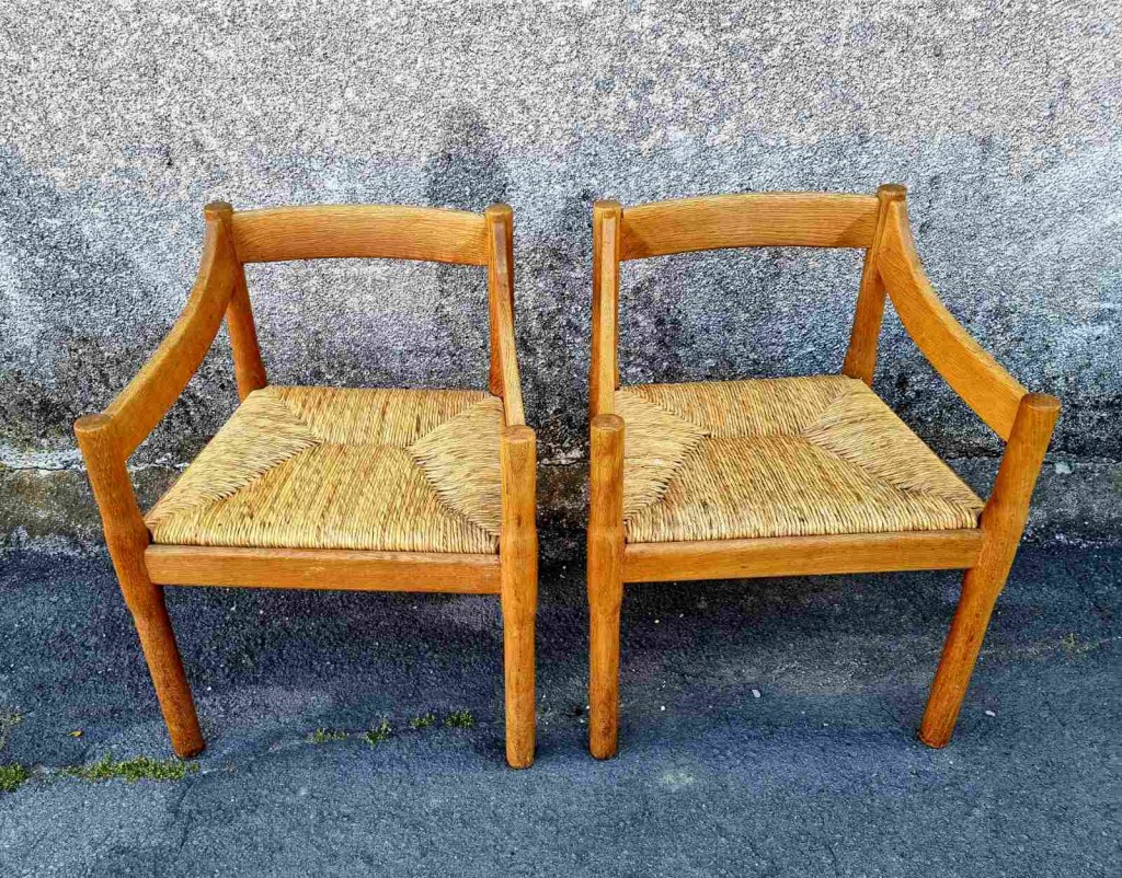 Pair of Carimate Chairs, Design by Vico Magistretti, Cassina Italy 60s