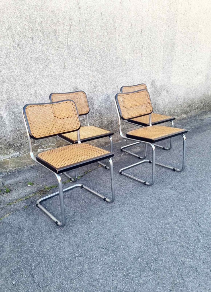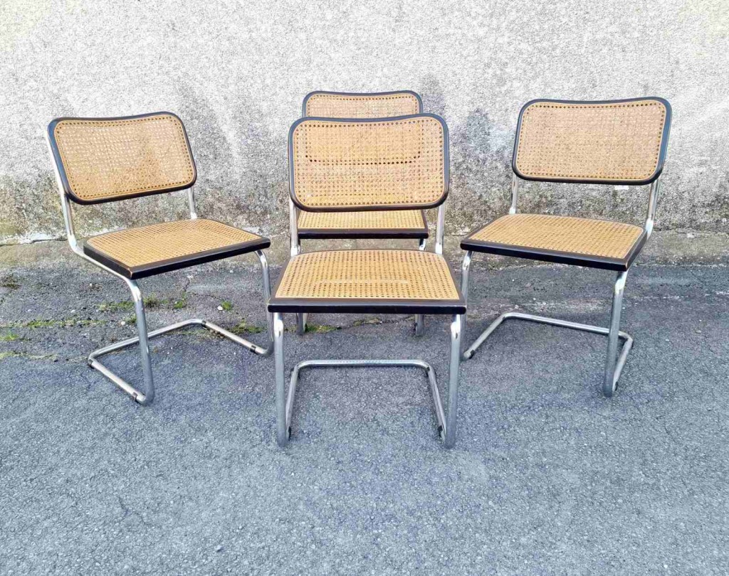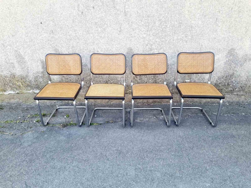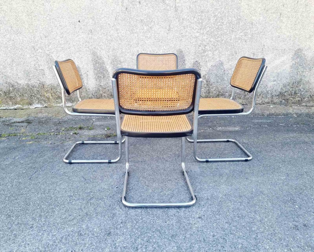 Set of 4 Bauhaus Cesca Chairs Designed by Marcel Breuer, Italy 70s