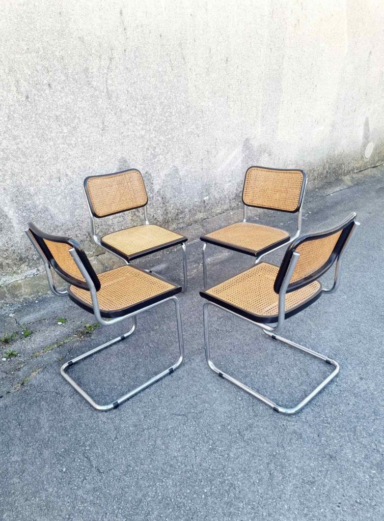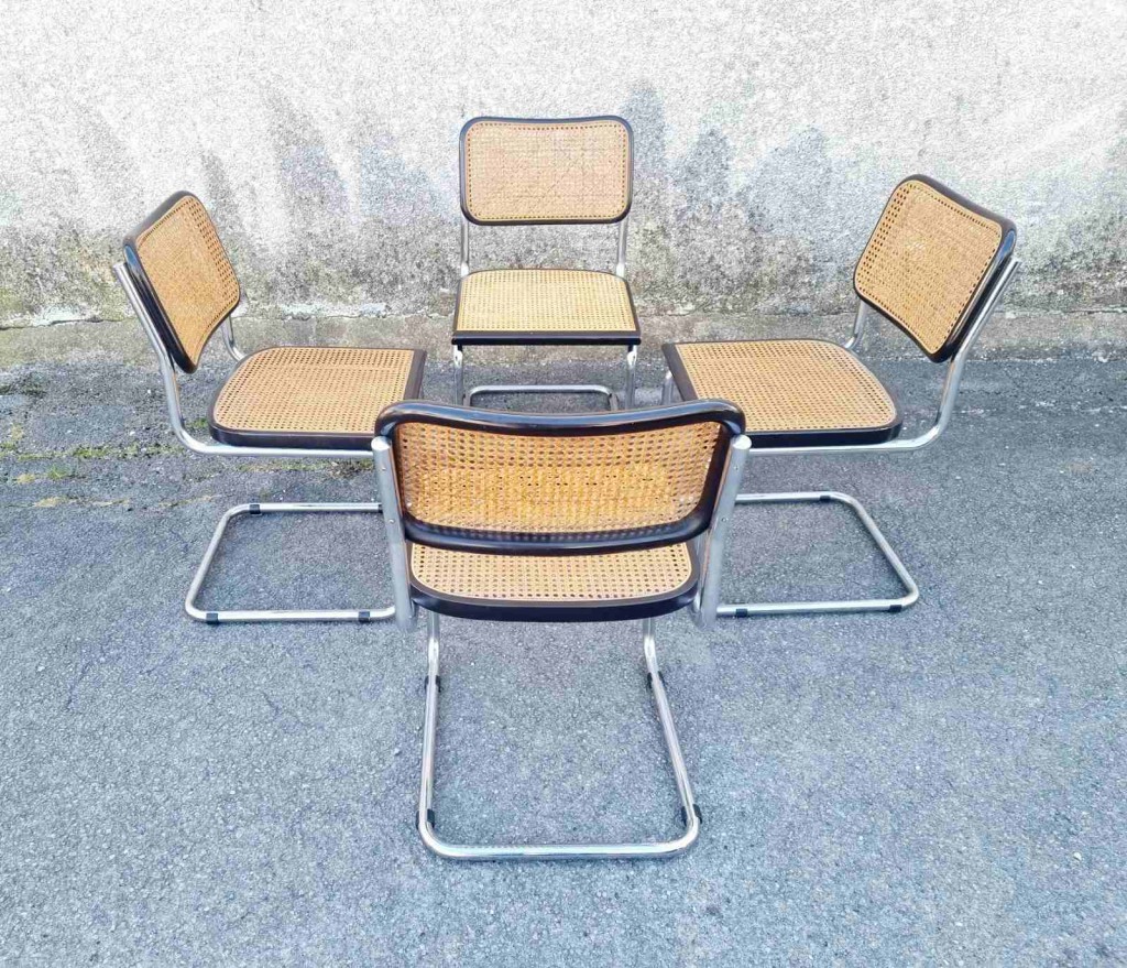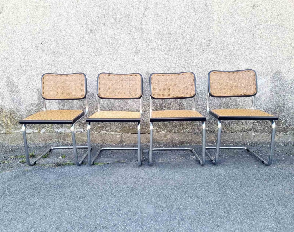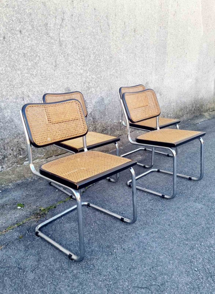 Set of 4 Bauhaus Cesca Chairs Designed by Marcel Breuer, Italy 70s