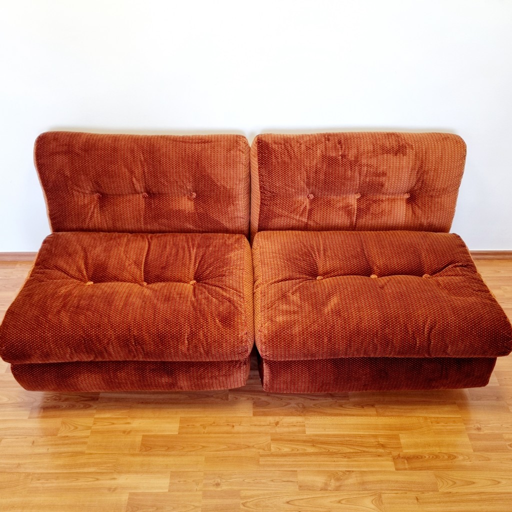Pair of Amanta modular sofas designed by Mario Bellini Original fabric in perfect conditions Made in Italy in the 70s